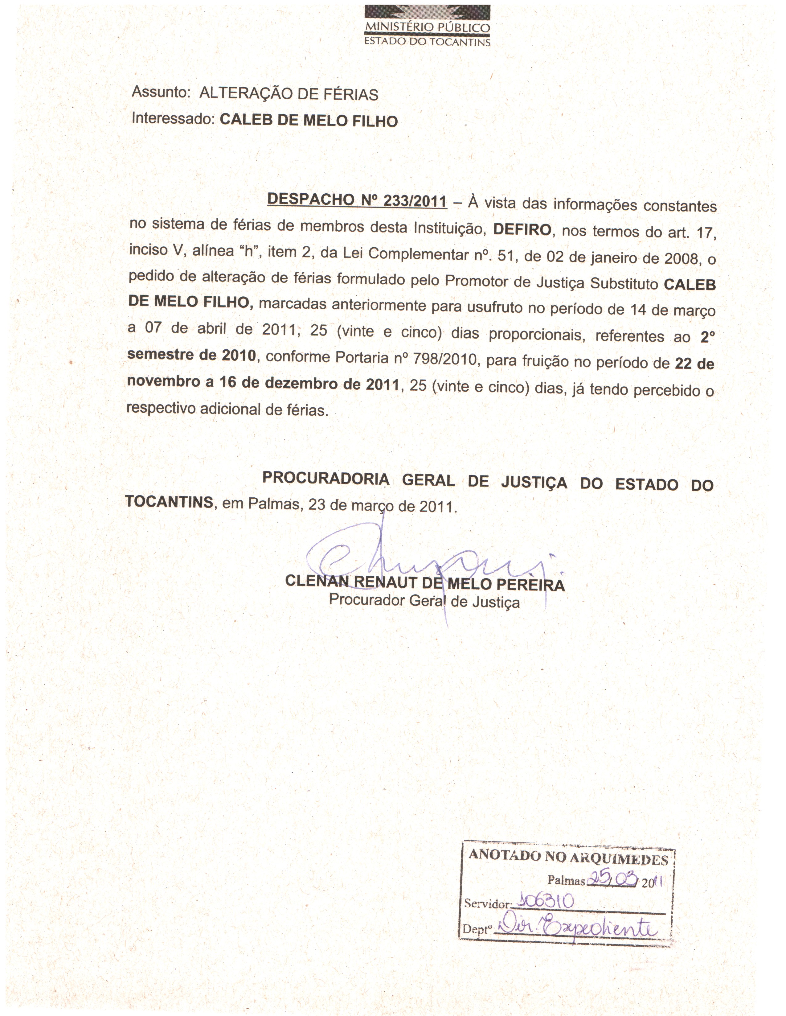 PUBLICAÇÃO EM: 21/03/2011 (DOE TOCANTINS Nº 3344)